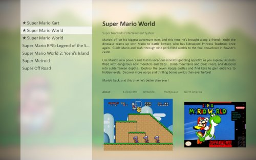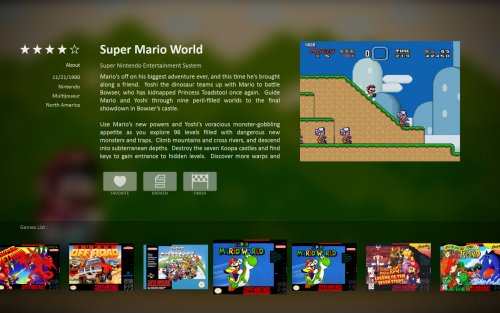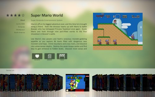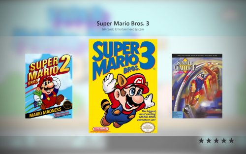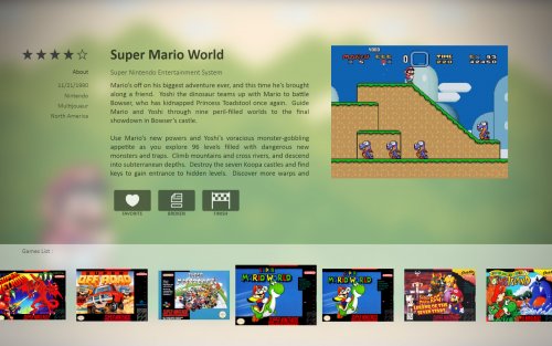 Game view 2 > Media center style, with horizontal cover wheel, in dark color.