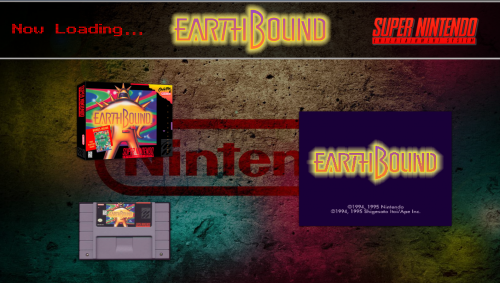 Startup Theme: has a header style framed banner that will display "Now Loading..." (text color does change by platform. I used common brand colors or as close to), the game's clear logo, and the platform's clear logo.