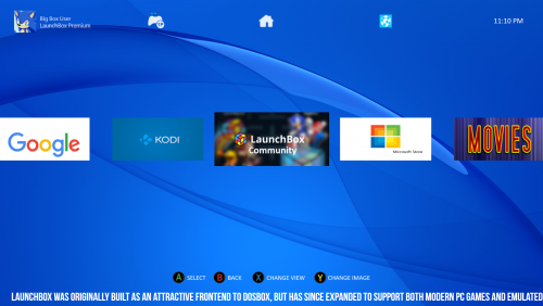 This is my one & only theme called Play Box that started off as a personal project to what i desired which was a modern look of the sony playstation 4 & Microsoft xbox one consoles user interfaces with nostalgic retro views of classic games. This theme is highly customisasble & has been several months of hard but enjoyable work, I have tested at 1920 x 1080p screen resolution & all seems fine so any positive feedback would be gratefull.