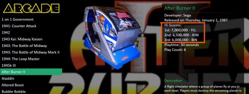 After playing a MAME Arcade game that saves its' high scores [and is supported by the included hi2txt program], this adds a Custom Field called "Hi-Scores" to the game. It will store 1st, 2nd and 3rd place and appear in the Game Details when the game is selected.