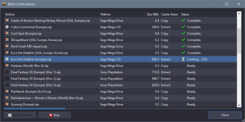 - Batch cache feature for extracting or copying multiple games to cache at once.