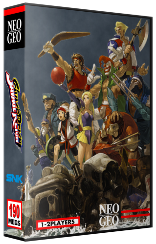 These custom boxes are a sort of hybrid, with an MVS flyer look and some basic AES elements (Megs/Players count and genre colour) thrown in. They may better suit a Neo Geo (MVS or AES) platform rather than a generic Arcade one.
