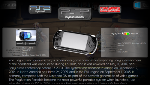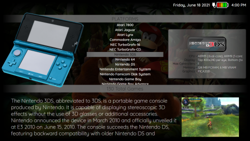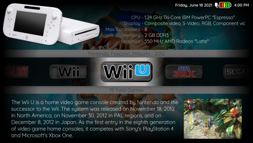This theme I have been working on for along time as it was used to implement new features that were added to the Community Theme Creator as they were inclued. It uses the new navigation bindings for the background images and works well on laptops. There are custom images so it's best to clear the platform clearlogo cache first.