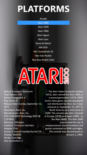 This is a vertical conversion of my FauxVert theme. It has a horizontal wheel view as well as text list view. Was designed to work with a 9:16 monitor but for the most part should work fairly well with other resolutions/aspect ratios. The one thing you have to be wary of is that this theme uses background images/videos that were rotated for horizontal aspect still (as did FauxVert). For example I just show 16:9 images and rotate them to fit in the 9:16 monitor. A 9:16 image/video would NOT render correctly in this theme.