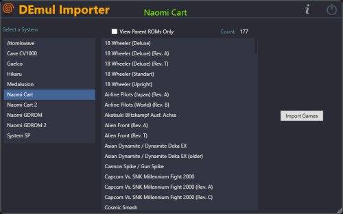 Improvement: Available games are now taken directly from DEmul (vs. a pre-defined list from 2018).