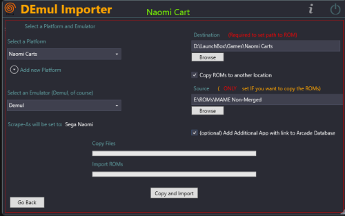 - If copying ROMs (optional), only the games main rom file is copied. It will not look for nor copy any required BIOS, Device or chd files.