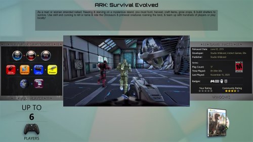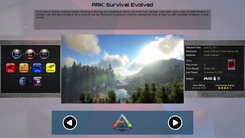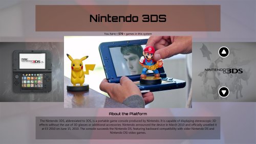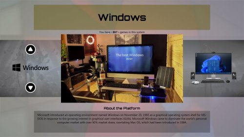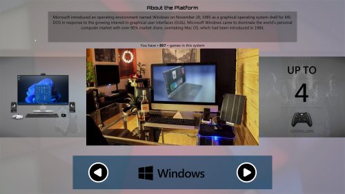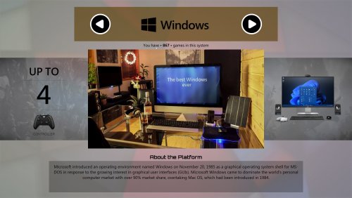 The reason I had called the theme "Fading Elegance" was that I went for an elegant look, sharp edges and straight lines and designed certain information sections to be displayed for a few seconds, then fade out while fading in something new. Like in the platform views, it may start showing an image of the platform device, it will fade out, as the maximum number of players will fade in. These will rotate between the two. You will see this throughout the themes with various types of information. They have a smooth, slowly color changing background and have most all the bells and whistles that are available.