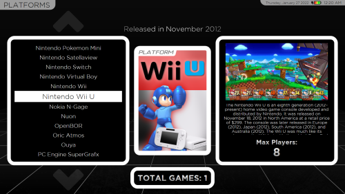 Built for speed this theme has a new custom complete set of Platform logos / Category logos and Playlist logos for everything in the LaunchBox Database.