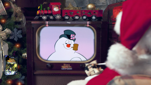 It contains a little bit of video vintage footage of the "Lost Toys" from Rudolph and Frosty as well in some of the TVs used in the different views
