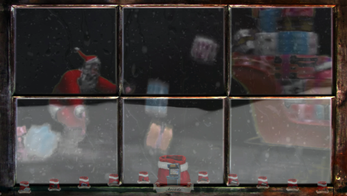 It starts up as to be looking out a window on a cold, windy and snowy day when Santa appears and has a bad day with the weather and his reindeer.