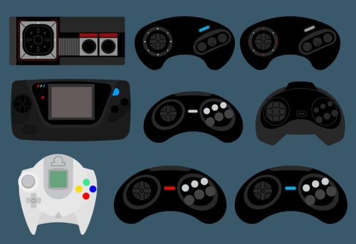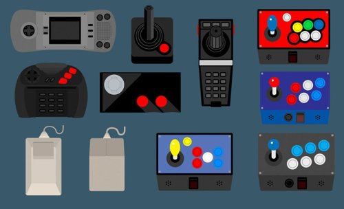 This is another controller image pack based on my previous Stencil pack. They are colour-cutout style icons representing the controllers of each system, e.g. Amiga mouse, Sega Mega Drive Control Pad, ZX Joystick, various handhelds etc. I've also included a few variations of some of the images, e.g different colours or regional variations.