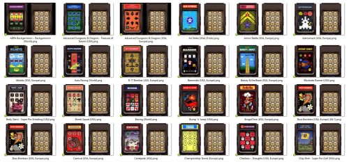Very little editing has been done to the overlays to clean them up. Some received a basic sharpening, some blemishes were cleaned up, and the tops of a few were split apart so the titles show more legibly above the frame. These are NOT meant to look 100% exactly like they do when nestled in a real Intellivision controller.