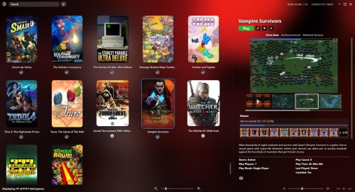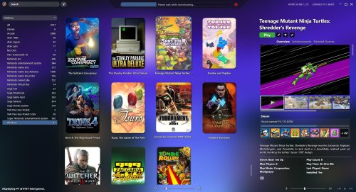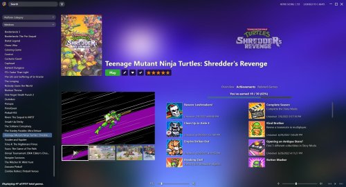 This theme utilizes a list view similar to Steamy in that all games are listed on the left and the rest of the window is used to display the games details