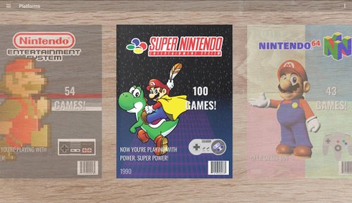RetroMags - Pocket Edition is a port that is loosely based on my Big Box Theme of a similar name. Retro Magazine inspired, each Platform is represented by their own custom magazine cover. It utilizes custom images, including a platform background, character, and controller. It also has a repository of platform slogans, used for the tagline on each magazine cover.