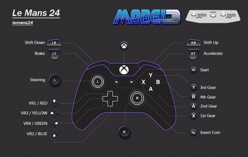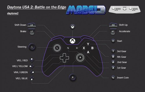 Test Menu Changes: -Language/Game Region set to English/USA. Only achievable by using the Region Change Code. Japan is the default. -Link ID set to SINGLE. Fixes Network Board Not Present. -Setting Region to USA removes the option to switch between the Dennis St. James and the Takenobu Mitsuyoshi soundtracks. (Dennis) is the default when set to USA. However, you can still play the alternate soundtrack version with a really easy cheat that is listed below. Analogue Steering Saturation & Calibration: -Steering was very twitchy due to the Analogue Saturation. The analogue steering is technically 1 to 1 however, there is actually quite a lot of 'dead zone' when you have the steering fully turned. I found you can ease off the control stick about a quarter of the way, from fully locked, before it actually started effecting the steering. I confirmed this in 1st Person view where you can see the drivers hand and steering wheel. I eased of the steering about a quarter of the way before the steering wheel moved and the steering started to react. The 'Input Test' within the test menu did not reflect this, giving values for the entire range of the left stick XAXIS. -So after some extensive testing I have changed the InputJoy1XSaturation to 155% for Daytona 2:BOTE and 165% for Daytona 2:PE, to compensate for this 'dead zone'. This makes the area of the analogue steering XAXIS wider giving way better control, without losing any actual in game steering 'range'. As soon as you ease of the stick the steering will react. -This 'kinda dead zone' would have been present on the original arcade machine hardware, but due to the amount of travel/range left and right on the steering wheel it wouldn't have been noticed (arms don't twist that far). This adjustment is more of a "trueish" 1 to 1 and is much more appropriate for use with a controller. General Info: -Controller will vibrate with this game if you have that functionality. -More racing modes and 'number of laps customisation per difficulty' are available in the test menu when set to USA. Alternate Camera Views (you won't be able to do some of these due to the VR buttons NEEDING to be mapped to the D-Pad): -Press VR1 and VR2 at the same time to get a view from just behind the front left wheel well. -Press VR2 and VR3 at the same time to get a view from just behind the front right wheel well. -Press VR2 while already in VR2 to get a cockpit view. -Press & Hold VR4, and while you are holding it press the other three at the same time to get a sky cam view. -Hold VR2 or VR3 or VR4 and repeatedly tap Start for other alternate views. Cheats: -Hold Start when selecting a transmission for 'Time Lap' mode. No other cars on the track. -Hold Start when waiting for the race to start/load to play the alternate soundtrack. -Hold Start when selecting a track to play the mirrored version. -Light Up Fantasy Amusement Park - Rapidly tap Start during Lap 3 or Lap 4 to light up the road. Unlock Hornet Car - Battle on the Edge Version Only (you won't be able to pull this off due to the VR buttons NEEDING to be mapped to the D-Pad. However, I have provided a save state of just after inputting the code, so you can adjust the stats and use this car): -Before starting the game, move the gear stick into first gear. -At the course selection screen, move the stick into fourth gear. -Then Press View Buttons in this Order: VR1, VR4, VR2, VR4, VR1, VR2, VR2+VR3 (together), and VR1. You only have 8 seconds to pull this off and then quickly select a track, if you don't want to play the beginner course. -If done correctly, you'll get the Hornet in place of the usual selection of cars. The cars stats can be modified using the view buttons and the steering wheel. Again, you only have 8 seconds to do this. Region Change Code: -In the main test menu, Push and Hold Start, then with Start Held, Press GREEN/VR4, GREEN/VR4, BLUE/VR2, YELLOW/VR3, RED/VR1, YELLOW/VR3, BLUE/VR2. -This brings you to a hidden region select screen where you can change to USA and other regions. |