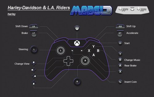 Test Menu Changes: -Game Region set to USA. Only achievable by using Region Change Code. Export is the default. -Cabinet Type set to STANDARD. -Engine Volume set to 5. The default is 8. -Number of Stages set to 5. The default is 4. -Analogue Controls calibrated in the 'Volume Setting' function. Analogue Steering Saturation & Calibration: -As the analogue controls have been calibrated in the 'Volume Setting' in the test menu there is NO need to adjust the InputJoy1XSaturation. Cheats: Extra Music Track -When you select your bike press and hold the foot/rear brake (A). -Then select your transmission with the Start button. Hold the foot/rear brake (A) and the Start button until the race starts. -Now scroll through the music tracks and you'll find one called ''Jingle Bells''. Region Change Code: -Go to test menu then go into 'Game Assignments' -Press Shift Up, Shift Up, Shift Down, Shift Down, View, Music, View, Music -This brings up an additional region select option where you can select USA and other regions. |