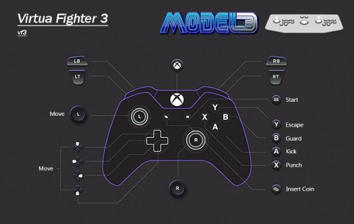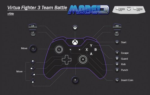 Test Menu Changes: -Language/Game Region set to English/USA. No Region Change Code, USA and other regions selectable from 'Game Assignments'. Japan is the default. -Show Command set to ON. -Stage Select set to CHALLENGER. The default is OFF. General Info: -Controls set to Dreamcast port defaults. The Left stick and D-Pad are usable at the same time. -A full moves list is here https://virtuafighter.com/commands/?ver=3tb Cheats: Different Costumes - Hold Start and then select your character with any button. |