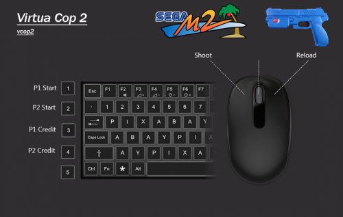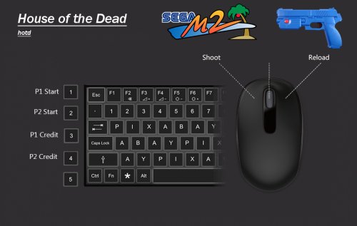 -Country set to 'USA', this changes the language to English. 'Japan' is the Default. -Calibrated both guns in 'Aim Set'. RawInput is on to allow for 2 player mouse support. Due to being RawInput this calibration is RESOLUTION SPECIFIC - 1920x1080 -Blood set to 'Red'. The Default is 'Green' -Set to Free Play Manual Gun Adjustment Values for Accuracy When Using RawInput at 1920x1080: ADXMIN = 259 ADYMIN = 119 ADXMAX = 581 ADYMAX = 438 Cheats: NOTE: LEFT refers to player 1's gun RIGHT refers to player 2's gun New Costumes (2 players): At title screen after entering at least 1 credit (2 credits for 2 players game), pull the triggers: LEFT, RIGHT, LEFT, RIGHT, LEFT, RIGHT, START Player 1 Plays as Super G: This code must be done at the title screen, after entering at least one full credit. The following code must be entered very quickly in order to work properly. LEFT, LEFT, RIGHT, LEFT, LEFT, START. Sophie Costumes (2 players): At title screen after entering at least 1 credit (2 credits for 2 players game), pull the triggers: LEFT, RIGHT, RIGHT, LEFT, LEFT, RIGHT, START Show Your Score: Put your coins in and press Left x3 Right x2 then press the start button... remember this has to be done very quickly. Have fun. LEFT, LEFT, LEFT, RIGHT, RIGHT, START |