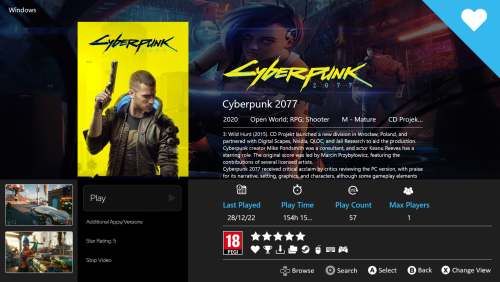 Included in my theme is alternative control layouts for Microsoft Xbox & Sony Playstation consoles, a collection of steam Banners for games of various platforms which i have resized to 460x215 & a collection of Movie Box Images, Clear Logos, Background Wallpapers & Steam Banners to get you started with as there is no way for Launchbox to download Movie metadata along with instructions of how to use.