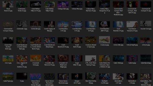 I scraped wallpapers for PS1 and was disapointed at the amount available so I set out to fix that. I went through 1296 games, removing bad/incorrect images, finding appropriate images to match the game, all cropped to 16:9. I've lowered the brightness so they don't overpower the foreground images in the theme.