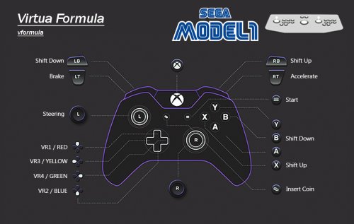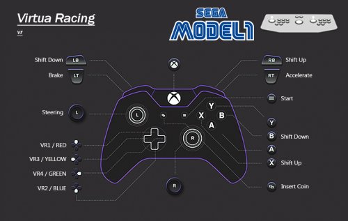 Clone: -This version of 'vf' came out a year later and does differ with it's attract mode and other visual aspects. -There is no 16:9 option with this version. Controls: -Standard racing layout. -4 View Change buttons mapped to the D-Pad -Analog Saturation is fine at default. Test/Service Menu: -Country/language set to U.S/English. Default is Japan -Car colour, number of laps, difficulty and link setup are also changeable. Using 'normal' defaults. -Free Play. |