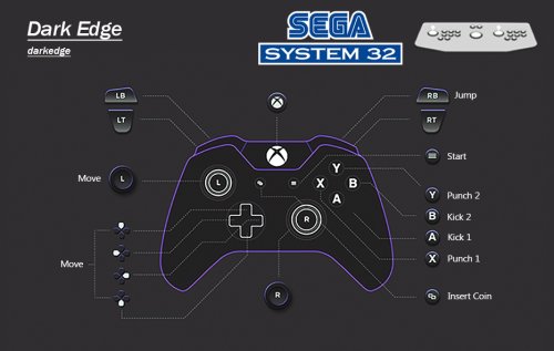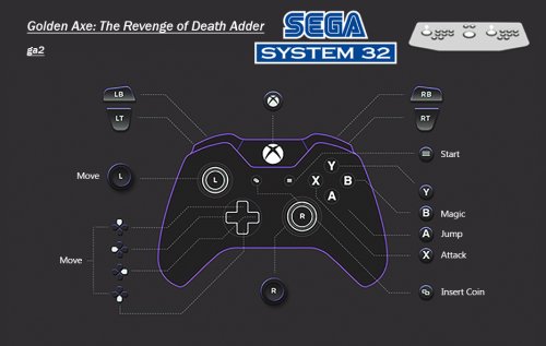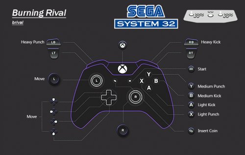 Controls: -Left & Right punch are also on LT&RT, in the spirit of the Sega Activator style input system this game had at shows/conventions. Test/Service Menu: -Advertise Sound set to ON. -Difficulty & Time changeable. Using 'normal' defaults. -Free Play set |