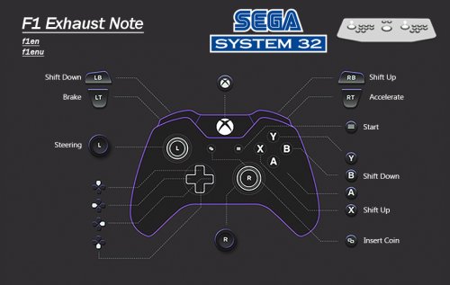 Controls: -Everything was straight forward. Dual Screen Setup: -The parent version 'f1en' has been setup for 1 screen/1 player use. -The clone version 'f1enu' has been setup for 2 screens/2 player use. Test/Service Menu: -Advertise Sound set to ON. -Difficulty changeable. Using 'normal' defaults. -Free Play set |
