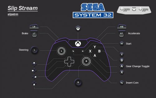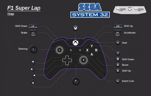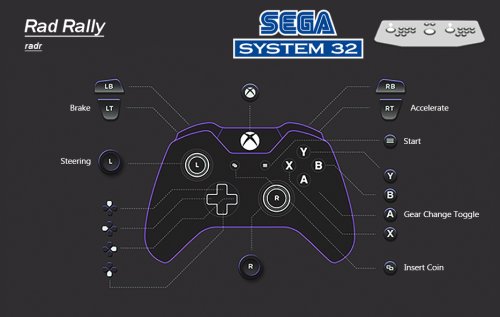 Controls: -This game has an issue. If you use the analog stick too fast the game will get confused and fix the last known steering position, causing weird steering. Changing analog values did nothing to fix the issue. Will probably need a proper MAME update to fix. -Using the analog stick slowly is the only way around this. Test/Service Menu: -Advertise Sound set to ON. -Difficulty changeable. Using 'normal' defaults. -Free Play set |