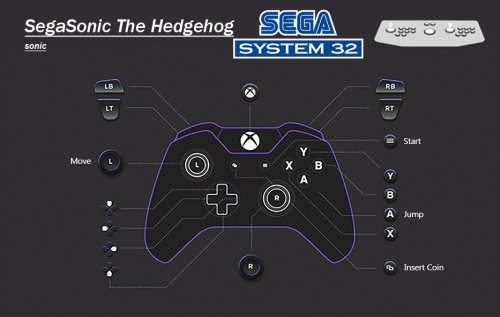 Important Sega System 32 Info: This platform had a lot of games that use 2 screens in one cab, side by side. This is not ideal for single player. MAME allows you to display one full screen with these machines. So, I have configured the parent versions to play with one screen/1 player and a clone to play with 2 screens/2 players.