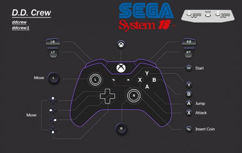 Rom Differences Info: -This game is one of 'those' that has a 3 player variant that allows for character selection, and a 4 player variant that fixes the character to the control/coin slot position. -For all games that do this, using both versions is the best option. You want the convenience of selecting a character for 1 - 3 players, but still want to be able to play 4 players. -The parent 'ddcrew' is 3 player. The clone 'ddcrew1' is 4 players. Controls: -Everything was straight forward. A few inputs moved for better control. Dip Switches: -Difficulty & Time changeable. Using 'normal' defaults. -Free Play set |