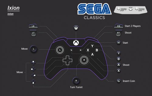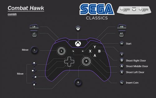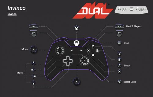 Controls: -Everything was straight forward. A few inputs moved for better control. -Accelerate has also been mapped to RT. This frees up a thumb to shoot with. Dip Switches: -Difficulty & Lives changeable. Using 'normal' defaults. -No Free Play available |