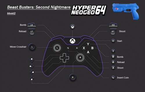 Controls: -Light Gun game. -Not 100% accurate at default. When calibrating precisely it's still off by a bit. Needs some time spending on it to get 100% accurate. Dip Switch: -Difficulty, lives changeable. Using 'normal' defaults. -No Free Play |