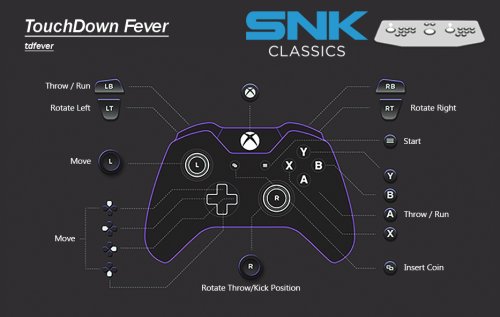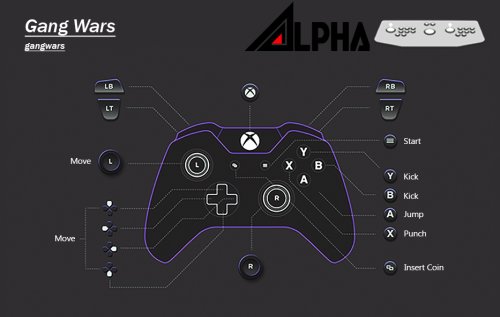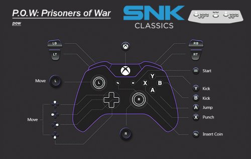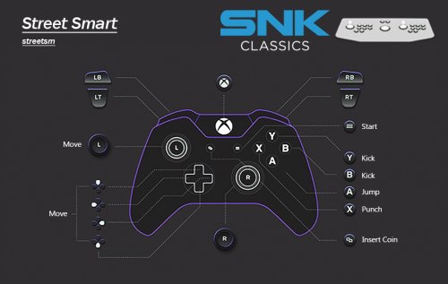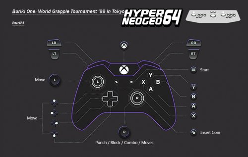 Controls: -Button combinations needed for power moves. These have also been mapped to the triggers and shoulder buttons for easier play. Dip Switch: -Violence set to MAX. Level-3 -Difficulty, lives changeable. Using 'normal' defaults. -Free Play set |