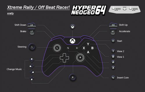 Controls: -Nothing special to note. Some controls moved for easier play. Dip Switch: -Speedometer changed to MPH. -Difficulty, lives changeable. Using 'normal' defaults. -Free Play set |