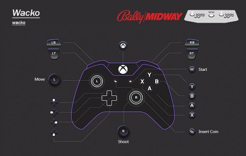 Controls: -Setup to play like a twin stick shooter. Dip Switches: -No Free Play. |
