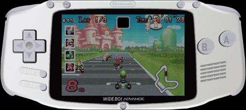 There is an alternate version included, with a different logo. It's a "Wide Boi Advance" because... it's a slightly wider GBA. [cue laugh track]
