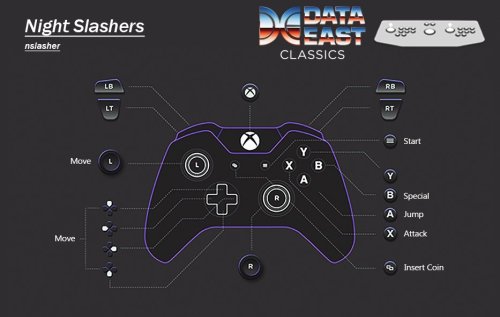 Twin Stick Fighter Controls: -Right stick is used for different sword attacks Dip Switches/Test Menu: -No Free Play |