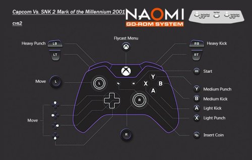 | Canon Spike cspike | -This game appears to have macro inputs or something like that hard coded to the core itself. L2 and R2 individually are special attacks, which are button combinations usually. These do not appear in the control options in RA. Also, these to not register in the test menu either, but they sure as shit work. Always leave these inputs alone (L2 & R2) as you'll get clashing. An unexpected bonus. -Hidden macro controls mapped on images. -Mega Man and Baby Bonnie Hood Unlocked -Cammy Shadaloo outfit from Street Alpha 2 Gold Unlocked Passwords for Test Menu: 81700 - Unlock B.B. Hood 16817 - Unlock B.B. Hood & Mega Man 51264 - Unlock Cammys' 2nd Outfit 44444 - Disables all hidden features VMU is usable with this game. Not sure what it does ATM. |