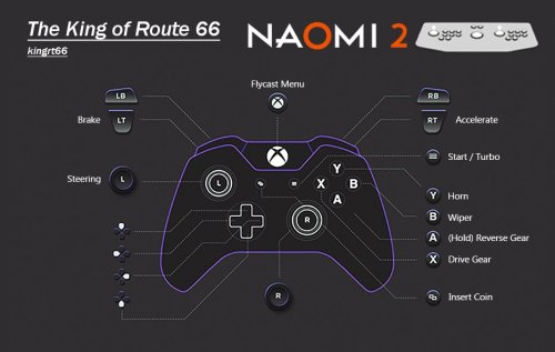 | The King of Route 66 kingrt66 | -Motor Power in the Test Menu needed turning off (NO-USE) for this game to boot. -CB-MIC has been disabled (NO-USE) in the Test Menu as this isn't emulated. -Auto-Acceleration has been turned off. This was for kids who couldn't reach the pedals in the OG cabinet. -Analogue Volume correctly adjusted for 1:1 analogue range with a controller. |