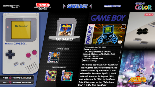 *This version has a unfinished N64 view included, default theme will not trigger for that platform. It's still very early version of it and isn't much to look at. It might be changed entirely, its in rough rough draft mode right now. It's based off of the unreleased bios menu for SM64 though, in case anybody was curious about it's whereabouts. Think I can do something cool with the hands but just don't have enough to build a whole theme just yet.
