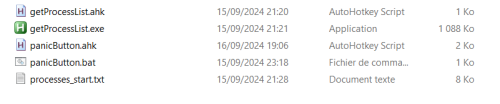 - The panicButton.ahk script compares the current list of processes with the one recorded in processes_start.txt and closes all processes that weren’t present at the session’s start.