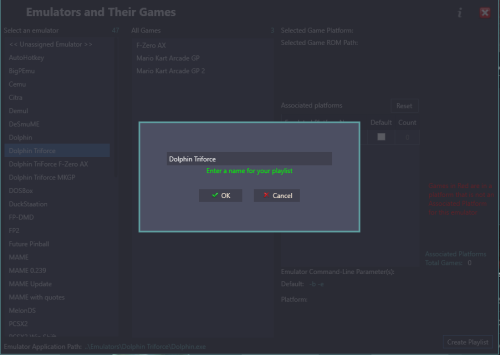 The Playlist will automatically be given the name of the selected Emulator. (Change it to whatever you want)