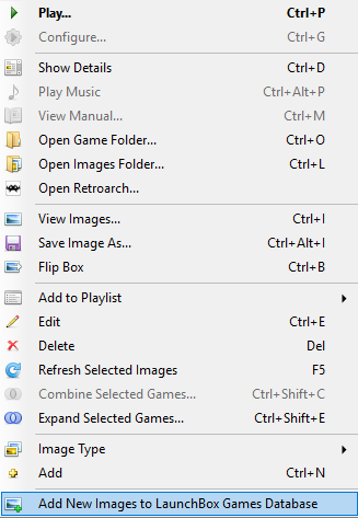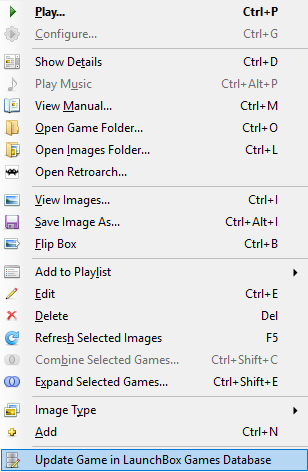 - If you update the information for a game in LaunchBox (clicking Edit from the right-click menu for the game), you will need to click away from the game (click some other game, for example), and then right-click on the updated game again for the context menu to update. Even without doing so, however, the correct process should run even though the text and icon on the menu haven't yet updated.