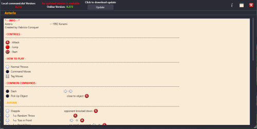 Inspired from MAME's built in feature in the main UI and via their in-game Tab menu to view game specific initialization procedures (LaunchBox only), commands and history (LaunchBox only).