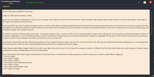 Contains game information, trivia, facts and tips on the arcade systems supported by MAME.