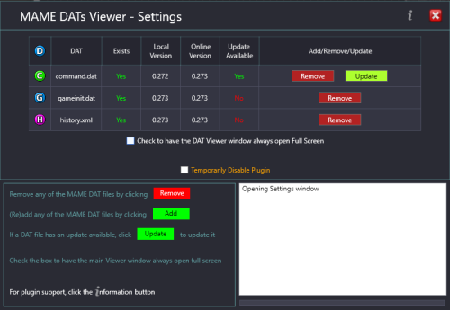 - The 3 Dat files are included with the plugin. No need to download them separately or include them with your MAME installation.