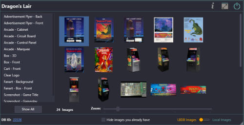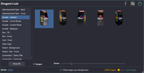 Switch between the LBDB Images and your games' [Local] Images (lower left corner)