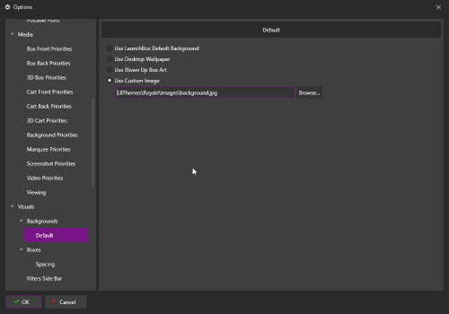 - Custom default background image (needs to be set manually in options, see screenshot).
