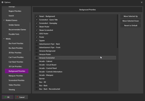- Fully dynamic background that seamlessly spans the whole window, using a games images (make sure to set background image priorities in the options, as hinted at on the screenshot above).