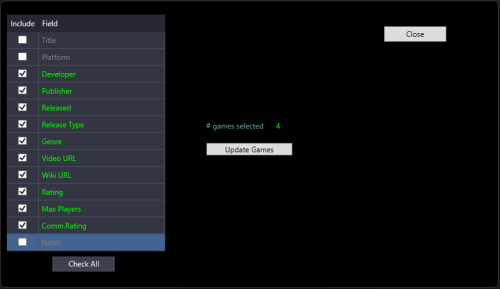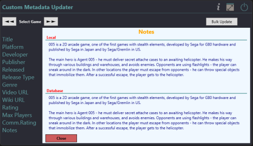 • Optionally, you can click Bulk Update, and update only the selected fields for all selected games.